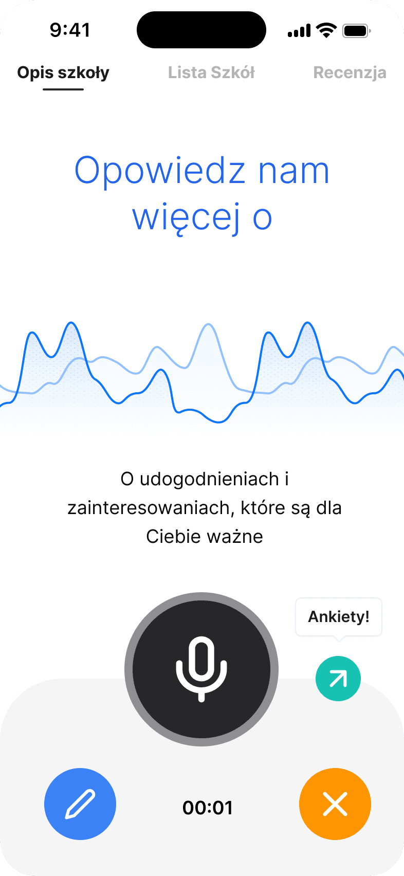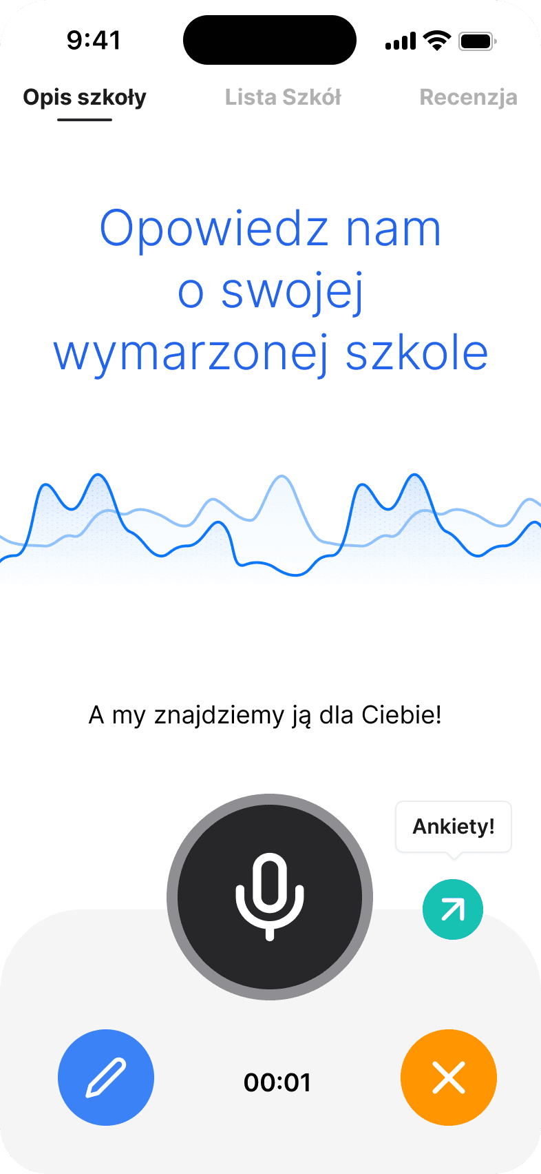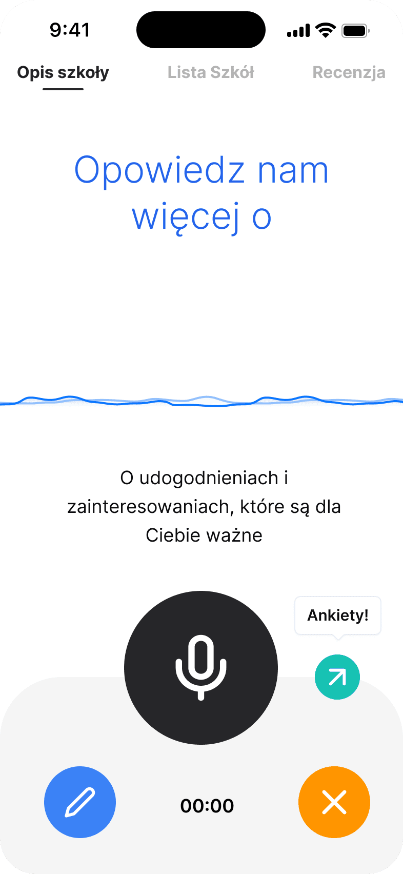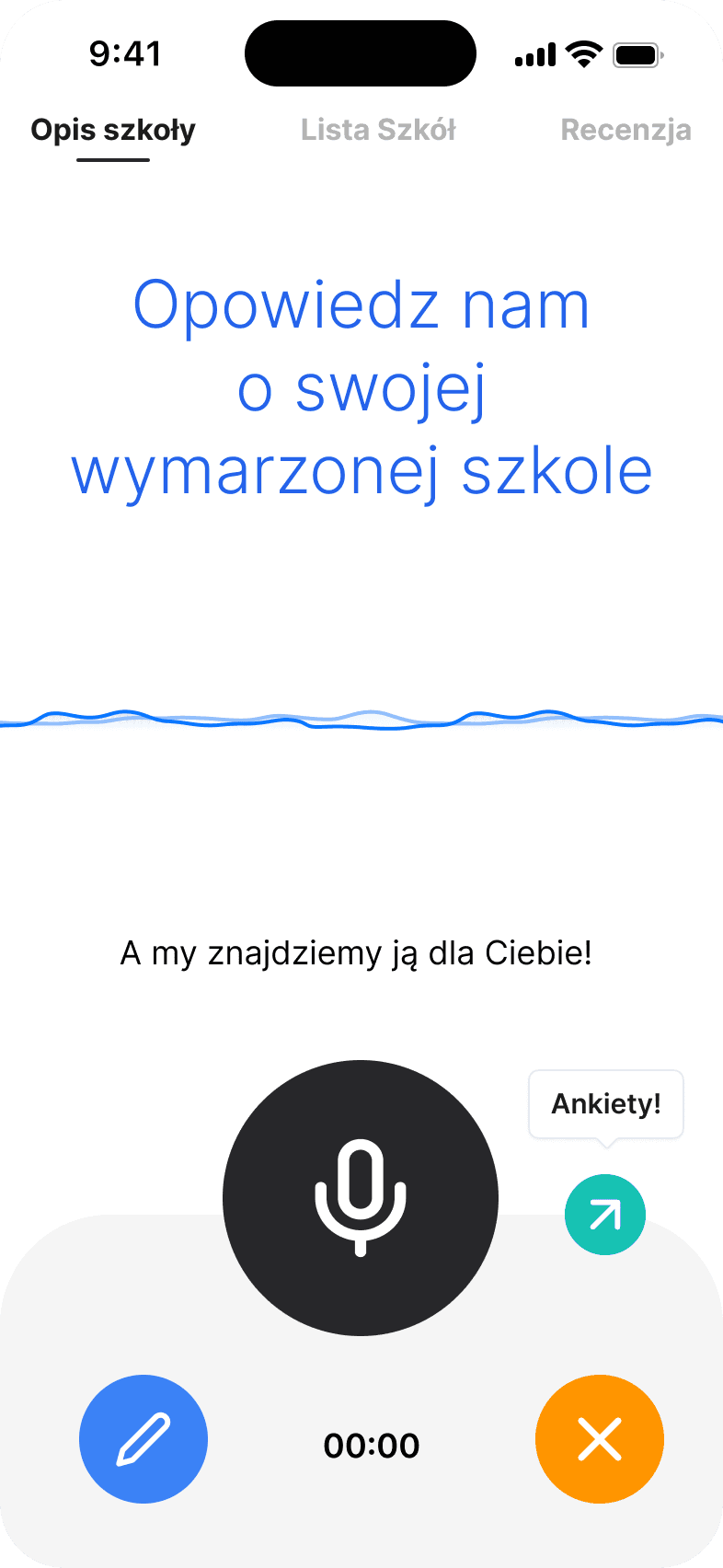 in choosing their ideal high school. Users describe their preferences, goals, and priorities through voice input.