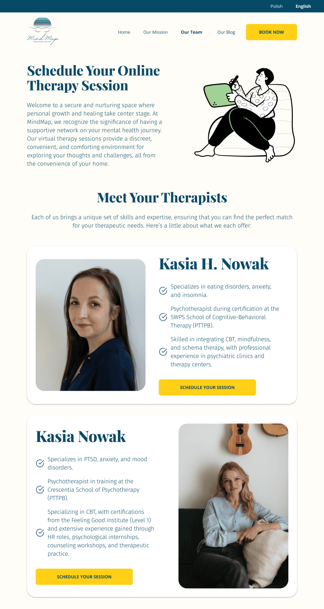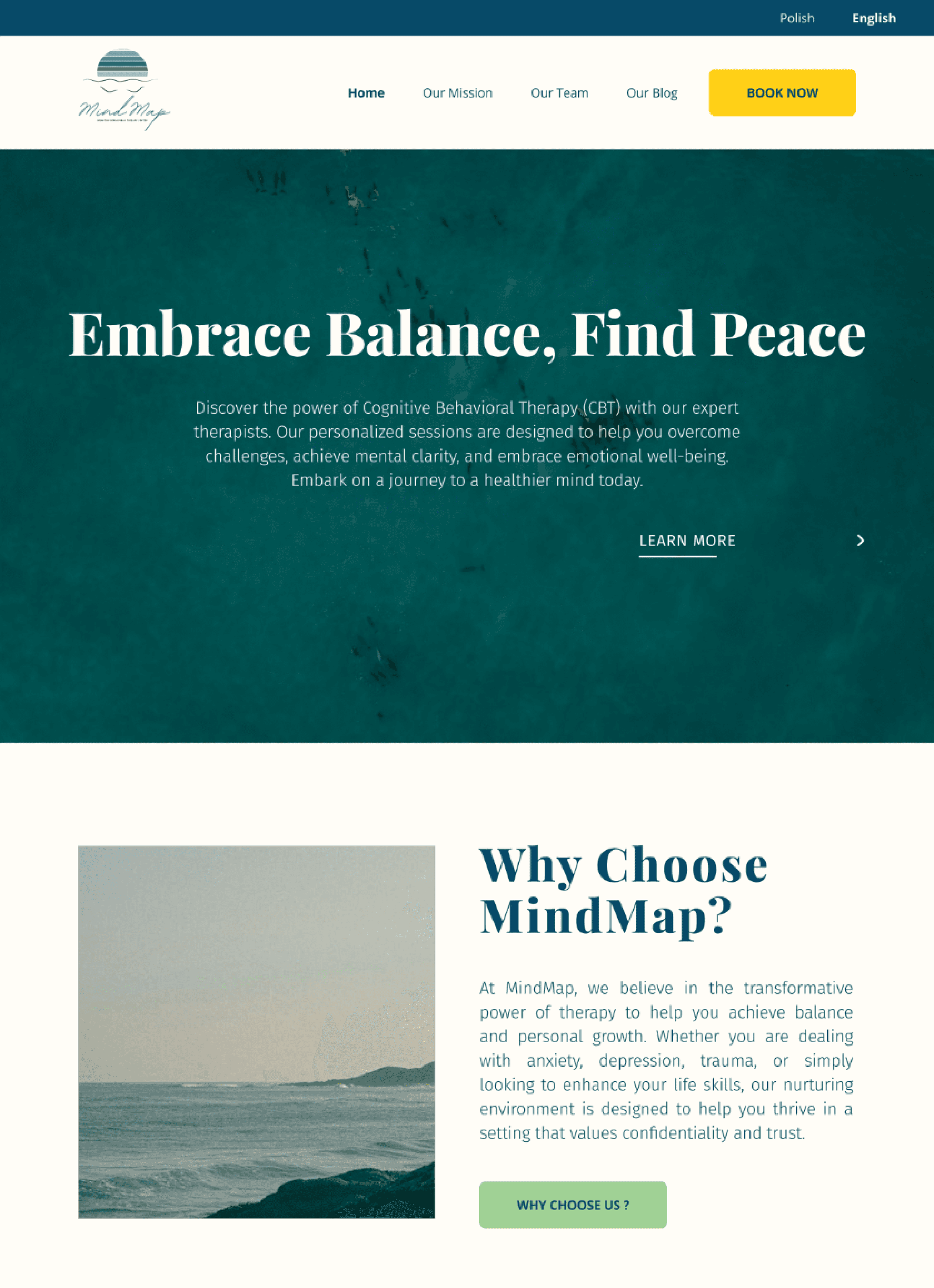 MindMap needed a website that would stand out in crowded psychoterapeuthic market and build trust with potential patients. They wanted to provide clear and accessible information about behavioral theraphy (CBT) and reduces barriers to contacting
