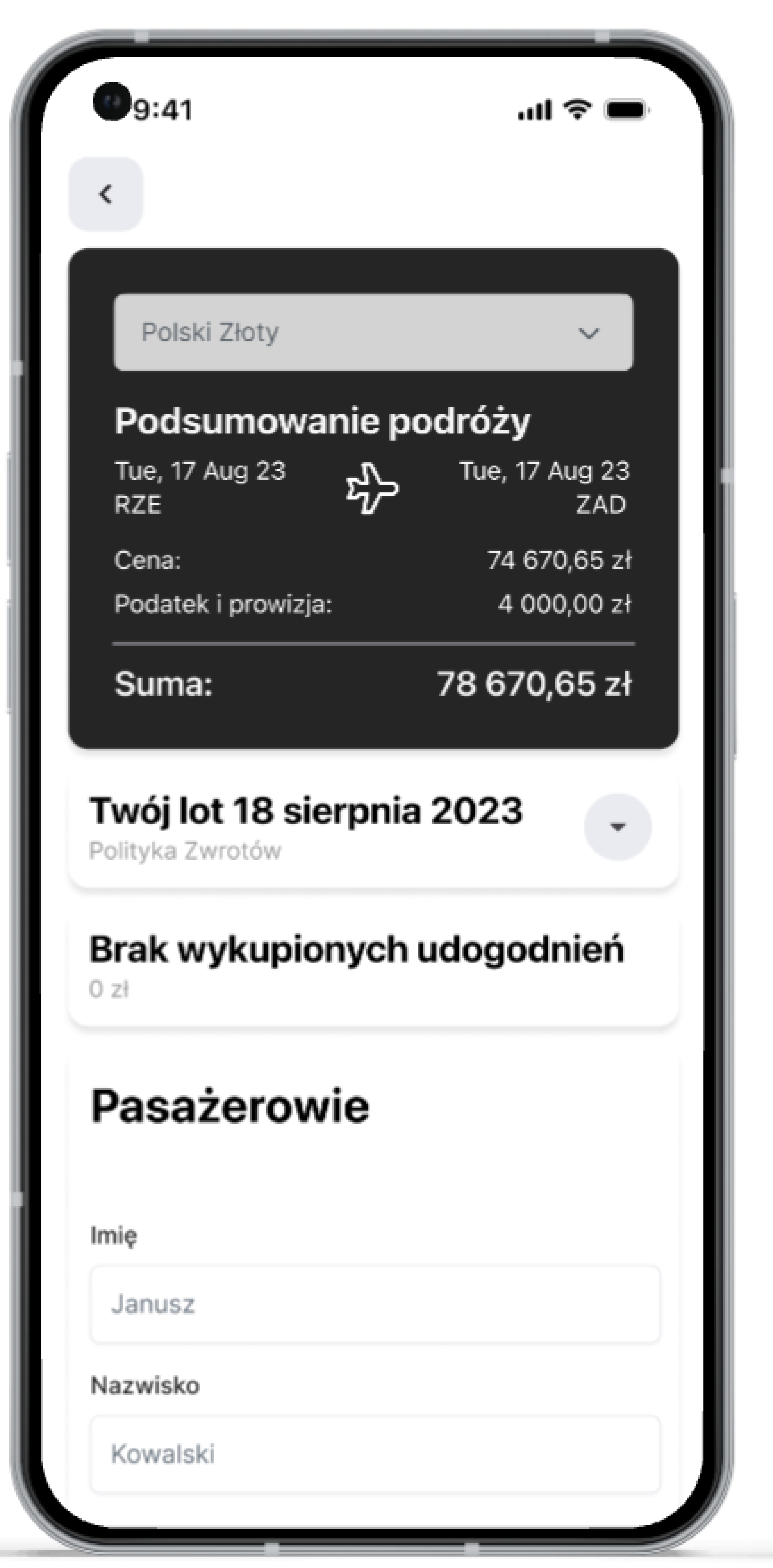 A flight-booking app designed