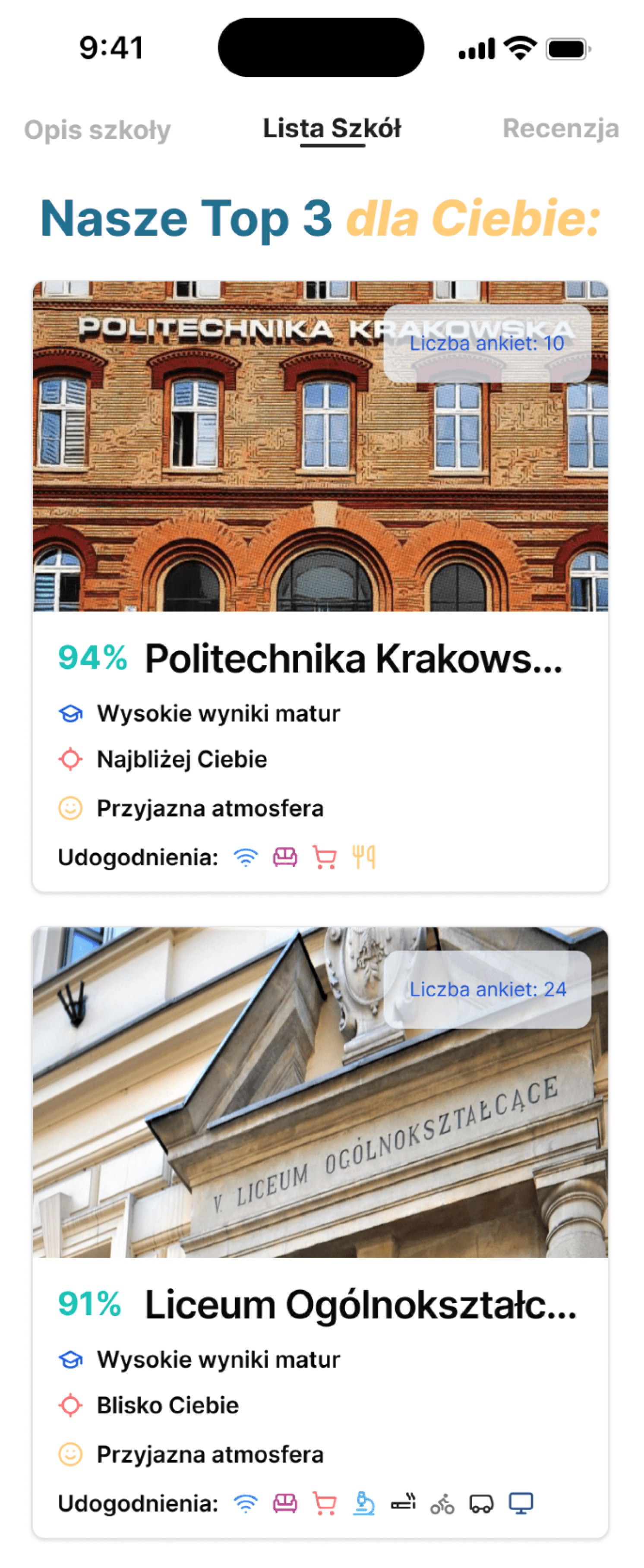 AI-Driven Recommendations - Matches user preferences with schools in their city. Provides a ranked list of options with explanations for the match.